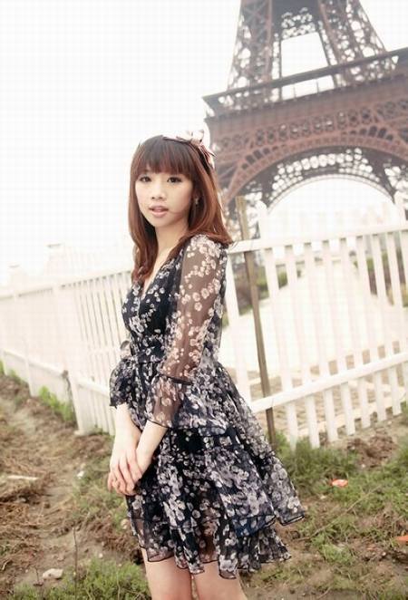 深色系的底色,印染上素色的小花,大大的飘逸的袖子, 在举手投足间尽显女孩们的柔美,飘逸的多层裙摆, 充满浪漫气质。