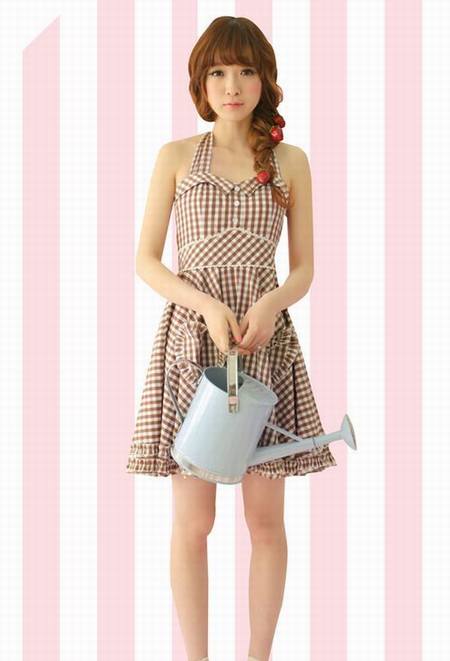 甜美的木耳边围绕着心形的口袋,满是公主的可爱气息,素雅的格子呈现稍许的英伦格调哦。