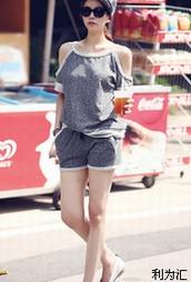 休闲套装玩得得意忘形!肩膀的吊带镂空袖设计 恰到好处的露出香肩 调皮中带些许性感 纯洁可爱中还有一些小女人,非常完美