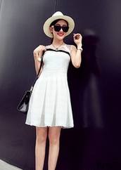 这件连衣裙,优雅、大气。简单经典的廓形,却又不失设计感,黑白色的撞色拼条演绎经典时尚。下摆工字褶大摆,衬托完美身材。