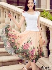 这款裙子绝对是不错的选择,印花的图案搭配一件白色的T桖是不是非常的干净利索呢,的确是这样的,这样的搭配很适合现在的流行时尚的风格,很多的朋友都会觉得这样的搭配实在是太简单了,其实简单也是一种美丽,这是真的,本女装小编对这一款的搭配印象是非常的深的,大家可以参考下。