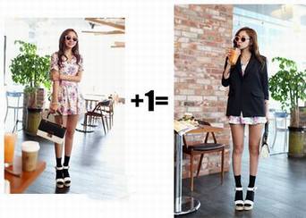 碎花短裙搭配小西装的甜美,既有干练帅气感,又不失甜美。