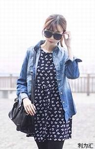 雪纺裙加牛仔衬衫的搭配,牛仔衬衫的帅气感给甜美的雪纺裙增加的休闲气息,更有种独特的味道,脚下的红色平底鞋很吸睛哦。