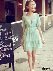 这个绿不深不浅,非常贴切的让裙子的清新感表现出来了,然后还要是雪纺材质的,让整体感觉非常轻盈清新。