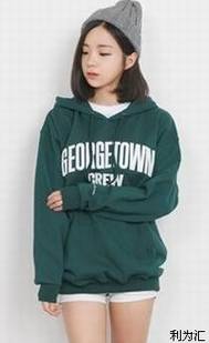 墨绿色卫衣独特抢眼不挑人穿,白色牛仔短裤秀出性感修长的美腿,运动鞋+短袜,运动感十足,毛线帽的加入更是增添了一份时髦感。