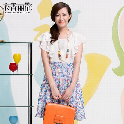 基本信息:风格:甜美甜美:公主裙长:短裙(76-90厘米)款式:其他款式领型:圆领袖型:荷叶袖腰型:高腰裙型:公主裙图案:碎花流行元素/工艺:荷叶边流行元素/工艺:抽褶流行元素/工艺:褶皱流行元素/工艺:拼贴/拼接流行元素/工艺:印花/印染品牌:衣香丽影材质:雪纺主材质:聚酯纤维。