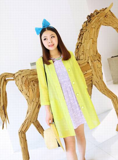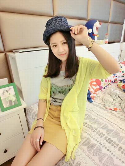 剪裁设计上都很别致!少见的雪纺欧根纱面料,撞色边大圆扣的装饰,小细节处的亮点,还蛮特别的!后背腰部系带抽绳的设计,小收腰效果,韩版女装视觉上看着会很显瘦!纯色系小宽松的剪裁版,俏皮百搭,超级好穿。夏天最佳时尚空调防晒服。此款给人的感觉甜美清纯、温文尔雅。雪纺镶边配上清新的素色搭配、较简约休闲,春夏秋你都可以随心所欲、轻松自然。