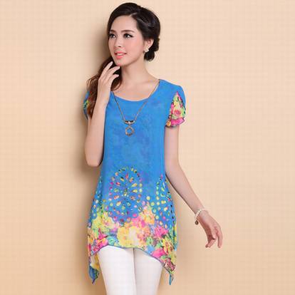 雪纺的服装,现在还是比较多的款式的,本女装小编对这个雪纺的款式还是比较喜欢的,材质也好,而且也好看的,相信很多的女女也是非常的喜欢的。剪纸元素不仅只表现在花卉自然中运用,就连本身的影像团花图案也频频出现在现代服装中。雪纺衫中巧妙的将古代的剪纸技术与现代的扎染印花技术相结合,碰撞出五彩斑斓的色彩感。