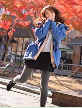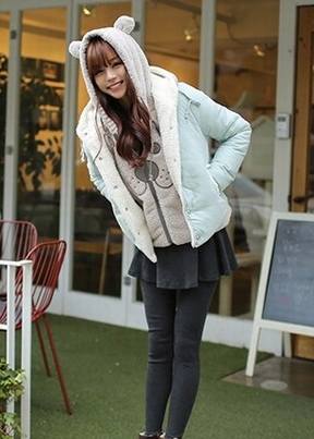 淡蓝色的棉衣外套搭配上灰色连帽的卫衣让妹妹看以来又小清新的感觉,而下身搭配上打底裤裙又有一种俏皮的感觉,如果在搭配上一双雪地靴吗么更能增添可爱的气质。