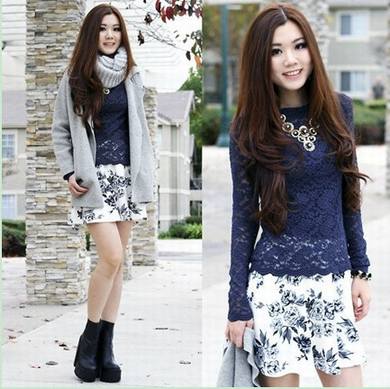 时尚精致的蓝色镂空打内搭搭配上青花瓷的短裤让姑娘有一种古典优雅的感觉,在穿上一件灰色的卫衣,下身船上肉色的打底袜和黑色的写照,让姑娘在寒冷的时候也能秀出美丽漂亮的美腿。