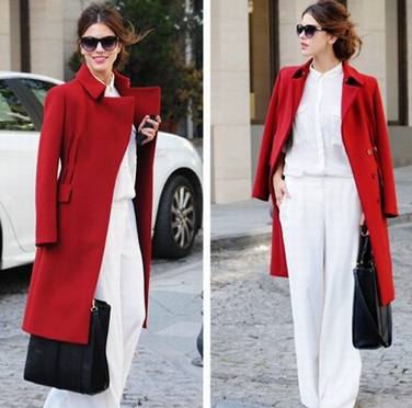 这里选择的保暖搭配就显得简单多了,以一身白色的内搭穿出时尚高挑的感觉,而在穿上一件红色大衣,一下子保暖和强大的气场就出来了。