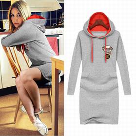 2013 欧美秋冬新款显瘦收腰时尚连帽长袖卫衣裙,运动衫似的款式让整体变得更加的休闲,修身设计显露出纤细的小蛮腰。采用纯天然灰色面料制作,质感细腻柔软亲肤,给肌肤最佳触感,使得穿着更加舒适,手感更加柔软,乃当前潮流趋势。