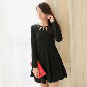 2013 秋季时尚新款领口镂空百搭长袖独家大摆连衣裙,镂空三角圆领,高腰大摆连衣裙,侧边拉链,有内衬;舒适、柔和的面料,穿起来保暖又很舒服。柔美的色彩,将女孩映衬的更加甜美、清纯。这款连衣裙,尤其很适合约会的时候穿,助你牢牢的锁住他的心。姐妹们,人手一件,赶紧入手吧!