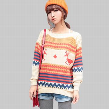 时尚经典的圆领设计 展现女人漂亮的锁骨 完美的修饰脸型韩版女装 领口采用拼接的样式 更加有立体感 整件衣服采用最流行的撞色设计 让衣服更加有层次感 简单的印花设计 展现独特的名族风感觉 舒适的毛线面料 既保暖又大气 超级百搭 特别是搭配上牛仔裤 风格随意又时尚