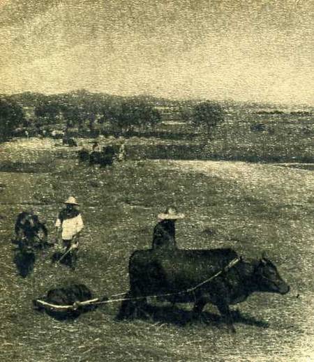 村里的王宝昭互助组在割完麦子后开始耕地,准备种大豆。