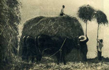 安徽省怀远县王咀村是淮河边上的一个村庄。过去这里几乎年年闹水灾。自从修治淮河后,这里连年获得了丰收。今年麦收时,家家场子上又铺满子金黄的小麦。
