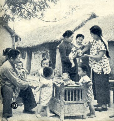 组织了看娃娃组,妈妈们就可以到麦地里去了。