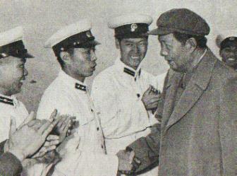 1958年9月20日,毛主席视察芜湖时,和海军指战员亲切谈话。