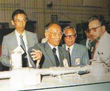 任新民(1915-)。曾统率中国通讯卫星工程各大系统的总工程师。图为任新民在参观美国宇航局AMES中心。