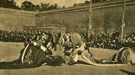 北京市第3、4两区的工人,在工人春节联欢游园大会中演出的民间游艺节目“舞狮”。