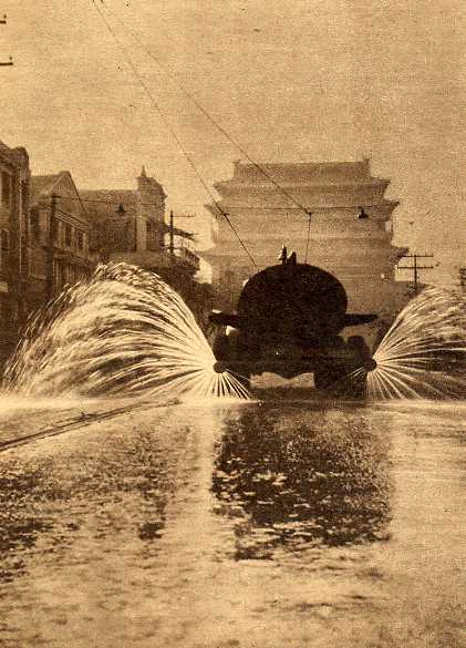北京人向来起得早。天还没亮,打烧饼的、炸油条的已经动手作活,使得小学生们、工人们、机关服务的人们,在上学上工上班之前,就可以得到点心吃。卖杏仁茶的、麦茶的、切糕的、也都是天一亮就摆出摊子来了。天一亮,大车和骆驼负载着煤或粮,从几十里外赶进了城。一挑挑的青菜,菜上还带着雨点和露珠,也都很早的挑进城来。铺户很早的就下板子,开门;澡堂开得特别早。