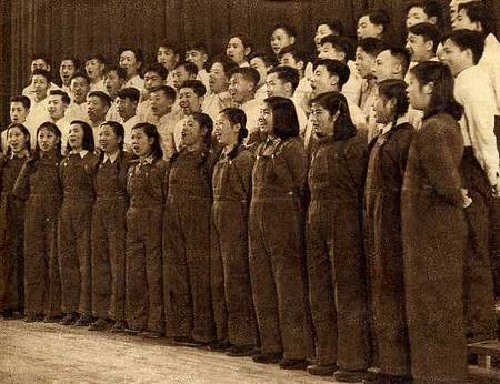 工人业余合唱团演唱“淮河两岸鲜花开”。
