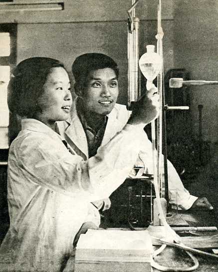 华侨学生俞秀善(印尼)在北京师范大学教育系学习。图为她在师范大幼儿园实习,教育孩子认识自然。