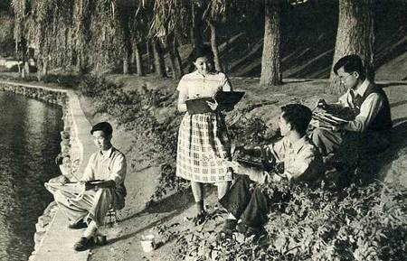 这些华侨学生都是艺术的爱好者,回国后他们考进了中央美术学院。他们时常到风景如画的北海公园练习写生。
