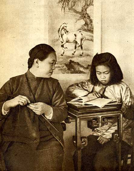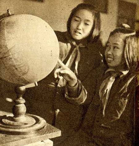 大女儿佩云(右)是个很用功的孩子。她在师范大学附属女子中学读书。