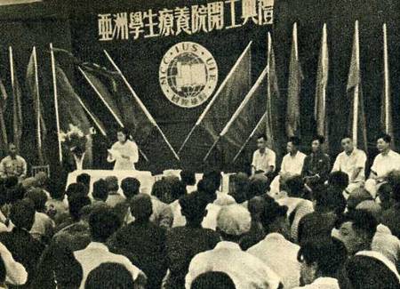 图为中华全国学生联合会副主席关若鸾在亚洲学生疗养院开工典礼上讲话。