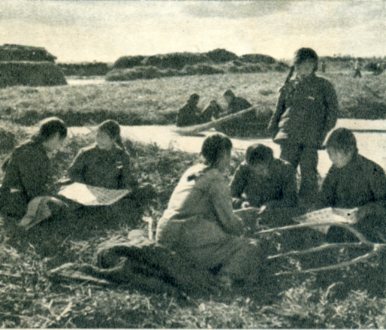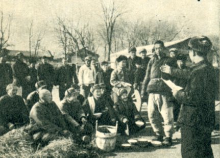 图为来广营社“生活简报”经常对社员进行批评和表扬,王文达(右起第二人)就是受到表扬的一个。