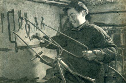 五一社社员孙兆乾改进喷雾器,提高了灭虫效率。
