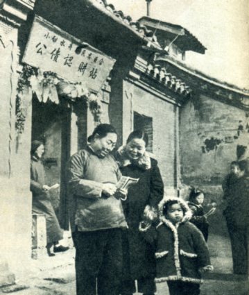 为了居民们购买国家经济建设公债的方便,居民委员会在胡同设立了公债认购站。