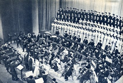 参加这次演出的乐队有93人,合唱队140人。乐队队员的平均年龄是27岁。演出受到观众的热烈欢迎,一千多张票不到1小时就抢购一空。演出结束时,德意志民主共和国驻我国大使汪戴尔向演员们赠送花篮表示祝贺。