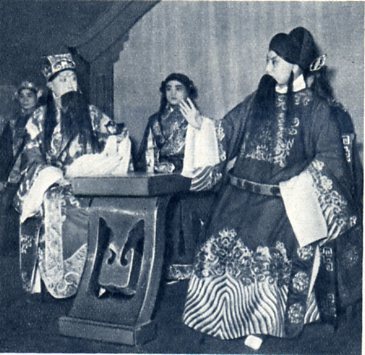 中国京剧院和北京京剧团联合演出的“赤壁之战”是根据“推陈出新”的精神在传统剧目“群英会”和“借东风”的基础上改编的。这出反映三国时代一个战役的戏,比两出传统剧更真实而艺术地反映了时代和人物的面貌。