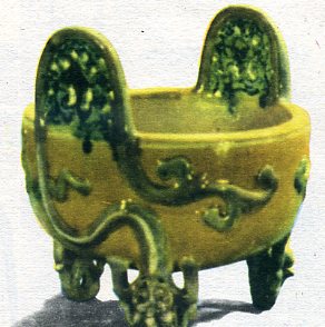 三采炉,耳和足用蟠龙组成,是磁器中的珍品。