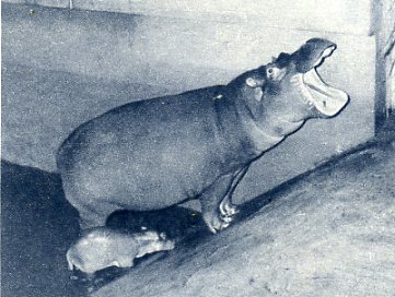 北京动物园的一只母河马最近生了一只小河马,重40多斤,长3尺多。这是非洲河马第一次在北京繁殖。