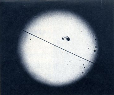 北京天文工作人员最近在太阳表面上北纬12度到13度之间观测到了近十年来最大的黑子群。1月8日的黑子群面积相当于59个地球;目前它们已从太阳表面的中部向西部转移,面积也在逐渐缩小。