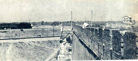桥头的宛平县城现在改为北京市的芦沟桥镇了。镇外的一文字山(有楼房处)是过去日军架炮的地方。