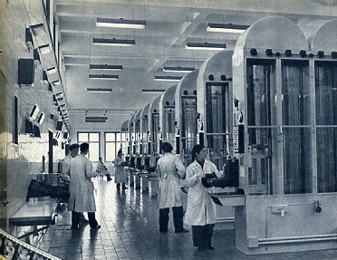 洗印厂的显影大厅,这里有11台自动洗片机。