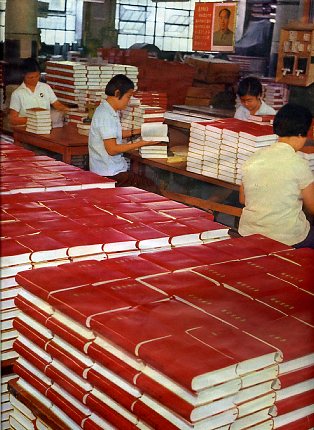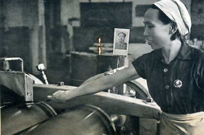 图版车间工人大搞技术革新,最近安装了一个自动化烤干机,保证了红宝书封面的印刷质量。