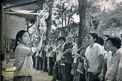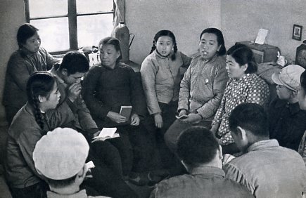 大办校外毛泽东思想学习班,让毛泽东思想占领一切阵地,把学校教育和家庭教育、社会教育紧密结合起来。这是一个有家长、邻居参加的校外毛主席著作学习小组会。
