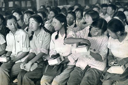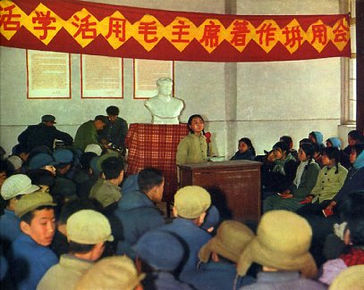 学校里经常召开这样的活学活用毛主席著作讲用会。