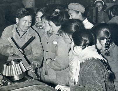 过去,新工人进厂只学技术,现在,新工人进厂,先学毛泽东思想,革命委员会发给每人一套毛主席著作,受到了新工人的热烈欢迎。
