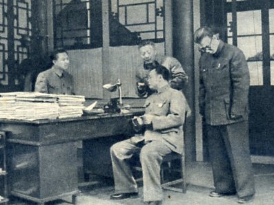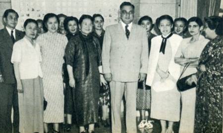 应全巴基斯坦妇女协会邀请前往访问的中国妇女代表团,1955年11月23日得到巴基斯坦总理伊斯坎德尔•米尔扎(中)的接见。前排左起第三人是李德全团长。