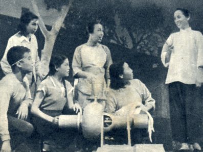 中国妇女文化代表团1956年2月17日到达意大利进行友好访问。图为团长李德全(左)和团员在罗马参观圆形演剧场。
