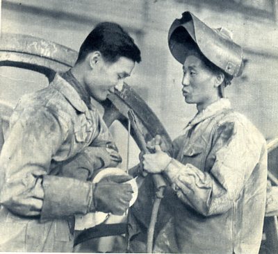 干部轮训班的学员玉思甫(右)原来是新疆维吾尔自治区的负责干部。