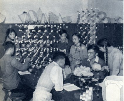 地质学院学生在复习矿物结晶构造。