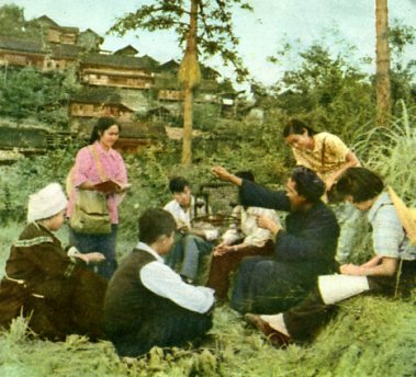 中央民族学院学生在贵州苗族地区进行苗族语言调查。