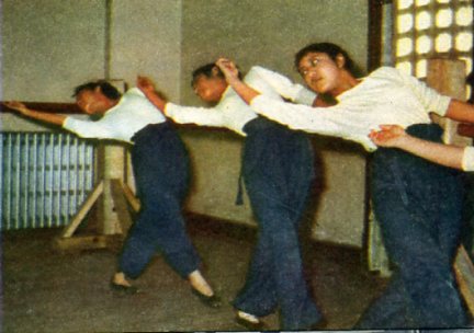 舞蹈训练班的学生在练习古典舞蹈的基本动作。